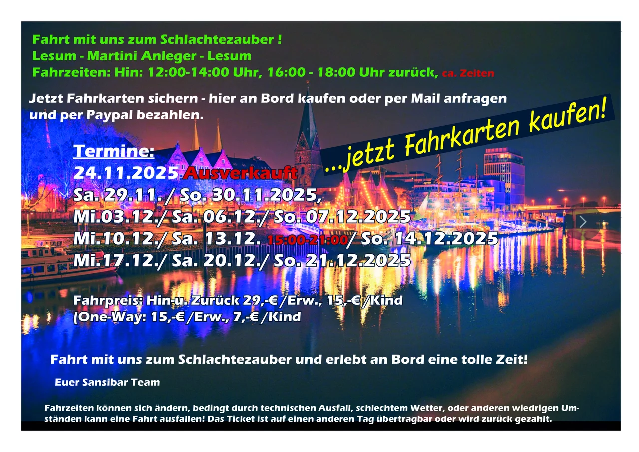 Entfliehen Sie dem Alltag und genießen Sie die frische Brise der Lesum / Weser auf unserem Fahrgastschiff "Sansibar". Mit einer Kapazität von bis zu 75 Personen an Bord bietet das Café Lesmona Ihnen die perfekte Kulisse für Ausflüge, Events, Seminare und mehr - ganz gleich ob für Freunde, Familie oder Kollegen.